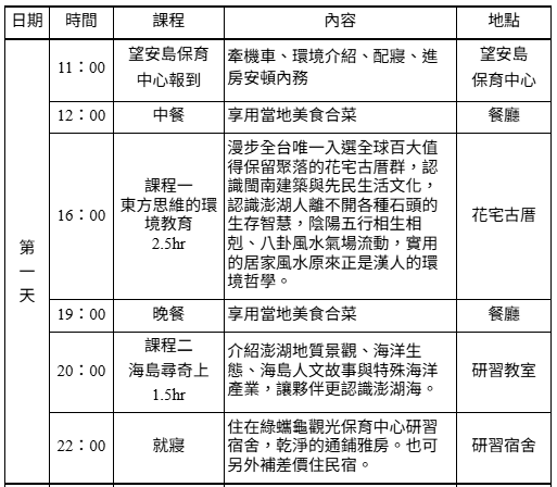 ※活動地點:澎湖縣望安島、綠蠵龜觀光保育中心